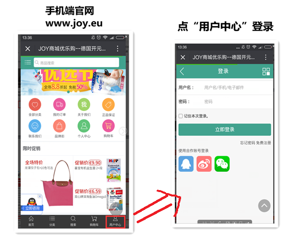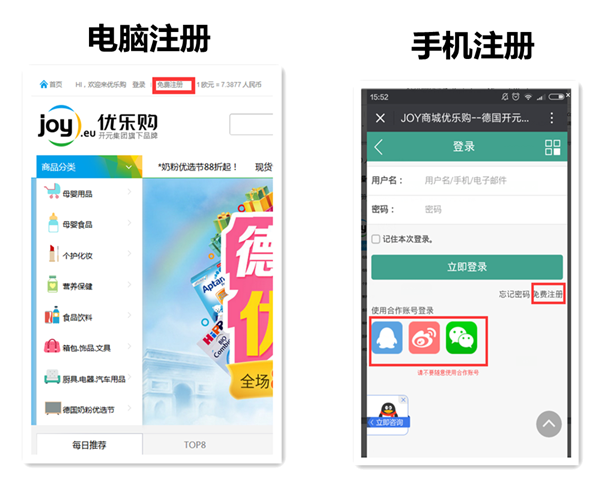 (请注意不要用微信或者QQ直接登陆,务必用上述已经注册的唯一优乐购账号登陆,以免影响分成计算)