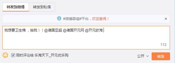 没有关注@乐淘天下_开元优乐购的小伙伴,先关注哈,再来就可以转发@5位朋友,记得勾选“同时评论给 乐淘天下_开元优乐购”