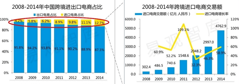 根据Analyse易观智库数据显示,跨境进口电商交易额不断攀升,进口电商将迎来高速发展期,有着巨大的市场潜力。