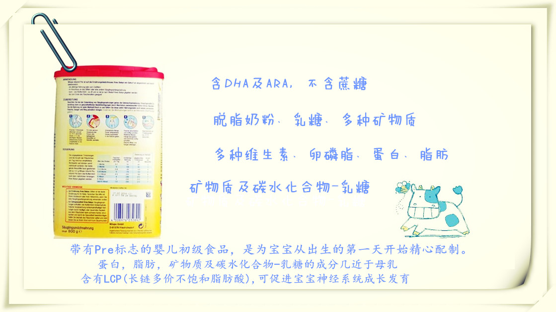 商品属性 [保质期] 1年 [包装规格] 罐装 [奶粉类别] 牛奶 [产地] 德国 [段数] pre [适用年龄] 0-6个月