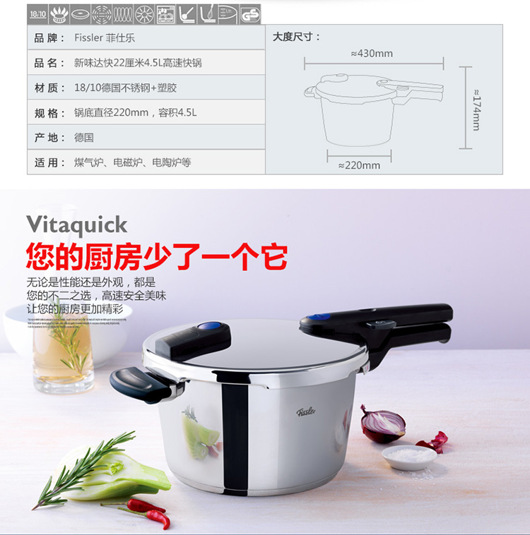 • 本店售价:€154.00 约合¥1281.63 支持德国直邮 德国Fissler Edelstahl Vitaquick菲仕乐新蓝点高压锅 不带蒸屉 6.0L 60030006000_菲仕乐fissler_厨具_厨具.电器.汽车用品_JOY商城优乐购--德国宏森旗下跨境电商品牌-德国代发货-德国海淘进口直邮商城 - 德国开元周游支付