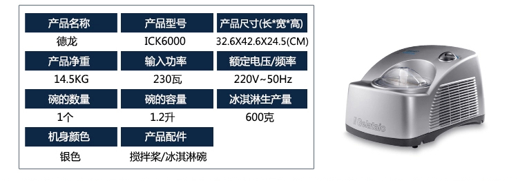 - 商品名称:德国直邮 德龙Delonghi ICK6000 全自动冰淇淋机/冰激凌机 雪糕机
