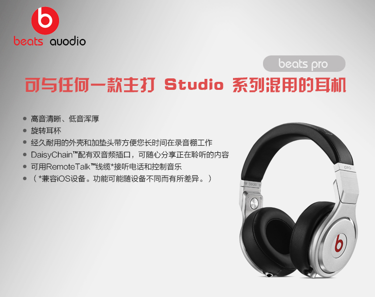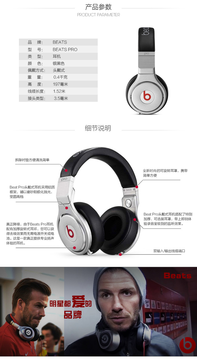 商品名称:德国直邮 Beats耳机 Pro头戴式耳机 高端贴耳式耳机耳麦 银黑色 头戴式 商品编号:YGO001980 品牌:Beats 上架时间:2016-05-27 商品毛重:1.200千克 如果您发现商品信息不准确,欢迎纠错;如果您发现有比我们价格更低的,欢迎举报