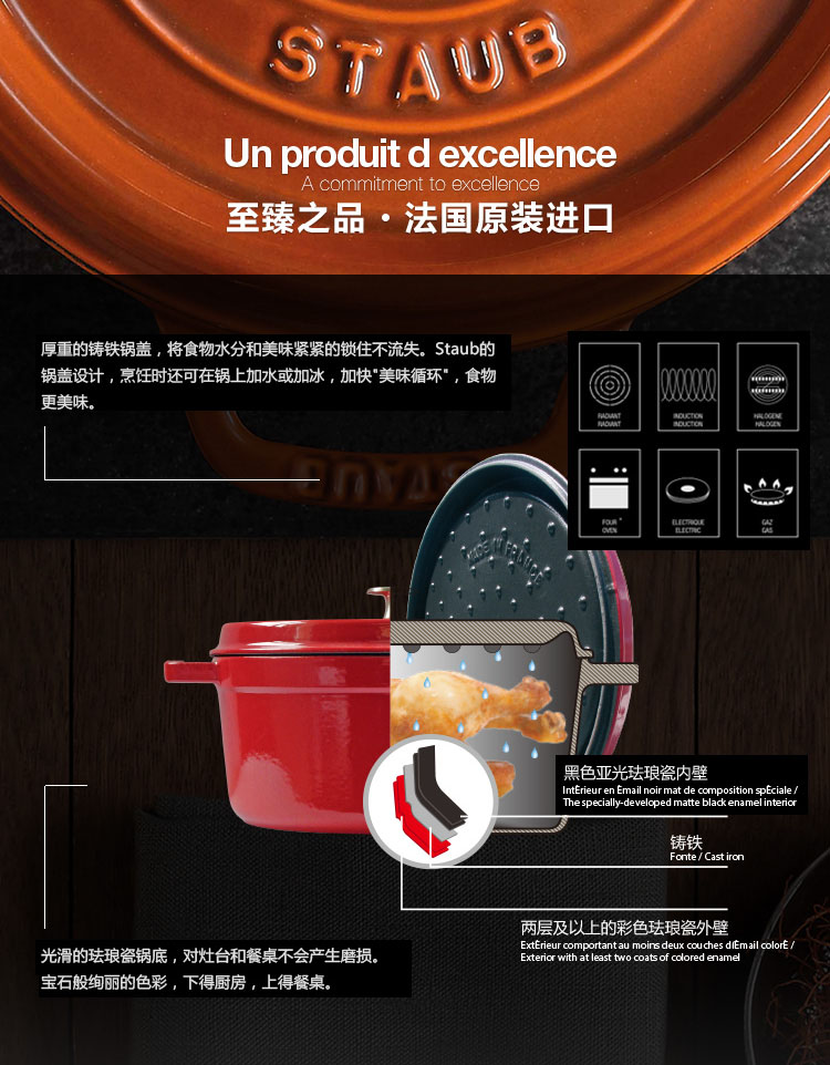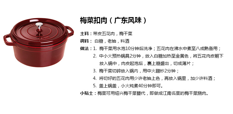 商品名称:德国直邮 法国Staub Round Cocotte Pot 珐琅铸铁锅 圆底 红色Kirschrot 1102206 24cm 商品编号:1102206 品牌:Staub 上架时间:2016-06-16 商品毛重:6.000千克 如果您发现商品信息不准确,欢迎纠错;如果您发现有比我们价格更低的,欢迎举报