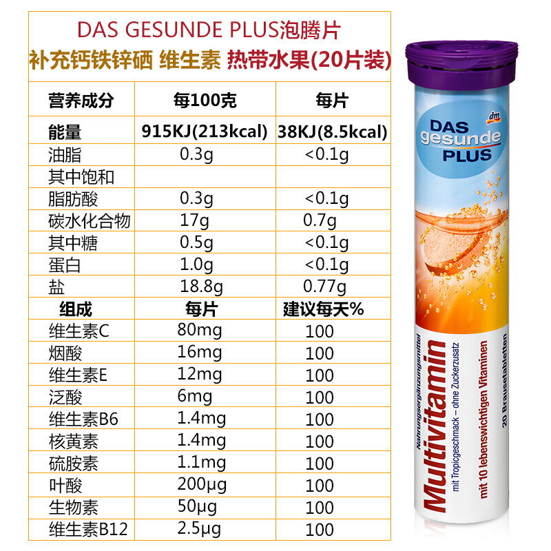 商品名称:保税直发 Das gesunde plus无糖泡腾片 补充多种维生素 紫 商品编号:XH1011 品牌:Das gesunde plus 上架时间:2018-03-06 商品毛重:99克 如果您发现商品信息不准确,欢迎纠错;如果您发现有比我们价格更低的,欢迎举报