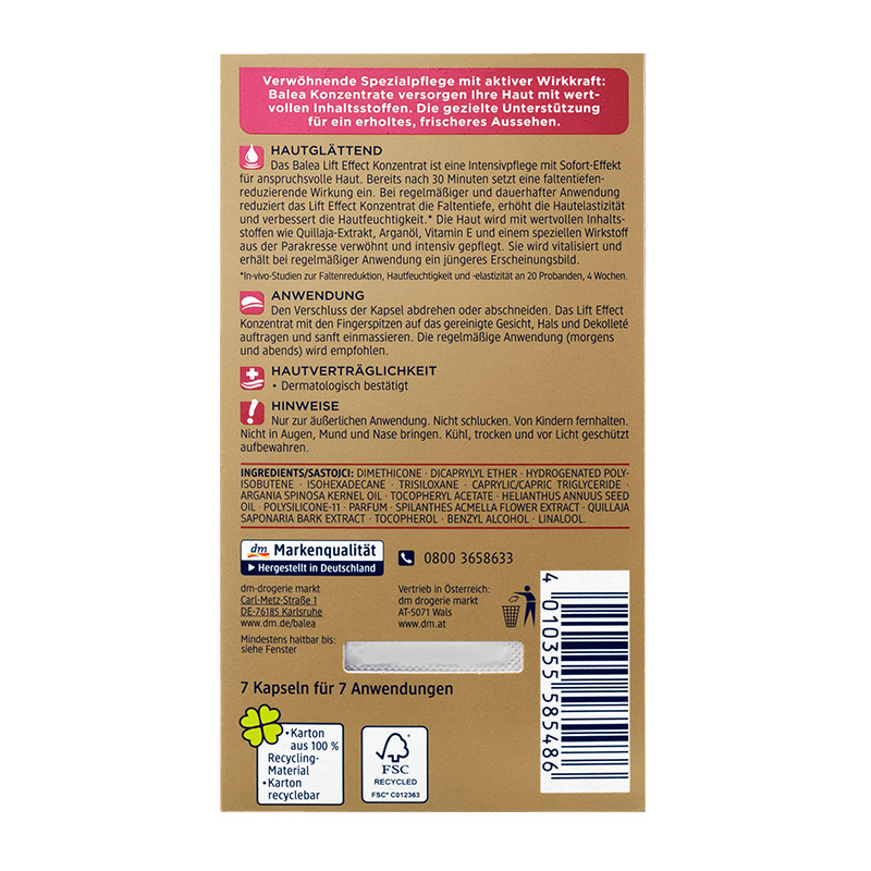 商品名称:德国直邮 balea芭乐雅护肤提拉紧致补水保湿抗皱 精华液胶囊 提拉紧致面部精华胶囊 紫色 商品编号:4078 品牌:Balea芭乐雅 上架时间:2017-08-04 商品毛重:12克 如果您发现商品信息不准确,欢迎纠错;如果您发现有比我们价格更低的,欢迎举报