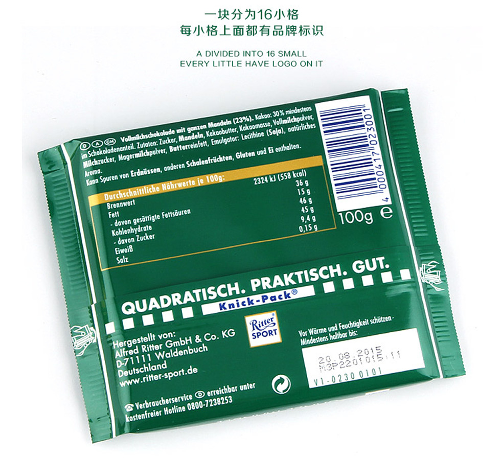 商品名称:德国直邮 Lindt 瑞士莲 Lindor精选软心巧克力 5种口味 50粒/袋 商品编号:8025 品牌:RitterSport 上架时间:2015-02-10 商品毛重:100克 如果您发现商品信息不准确,欢迎纠错;如果您发现有比我们价格更低的,欢迎举报