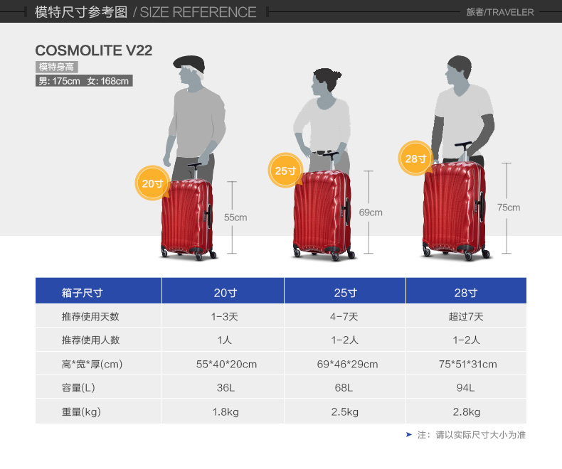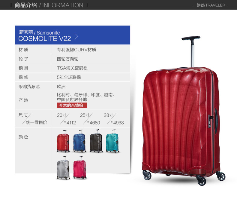 - 商品名称:德国直邮 Samsonite新秀丽Cosmolite系列 贝壳行李箱 拉杆箱 星夜蓝 32寸144升 73353-1549
