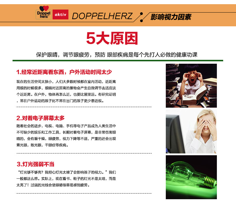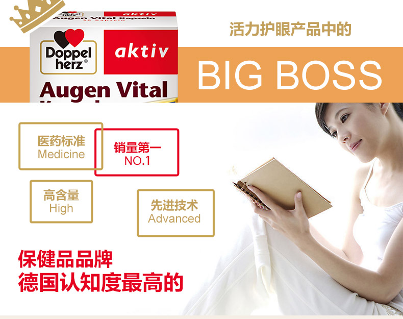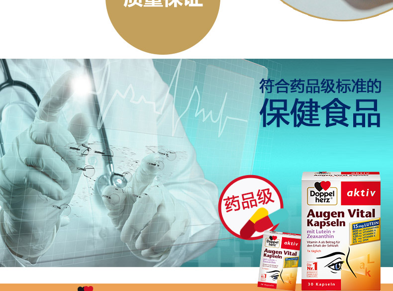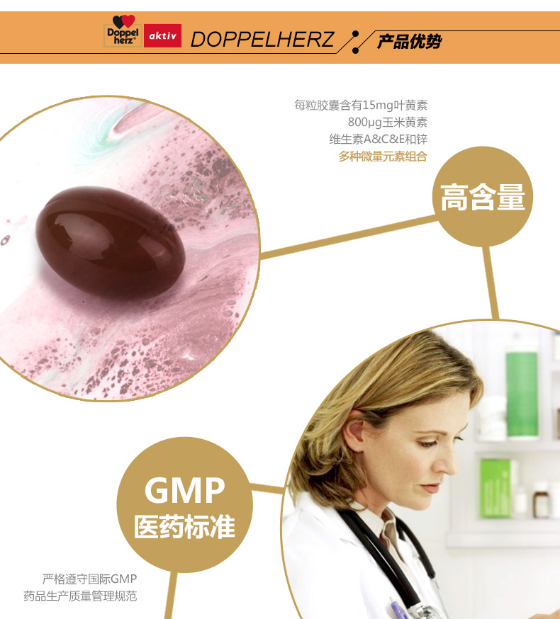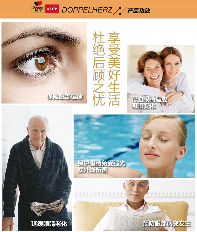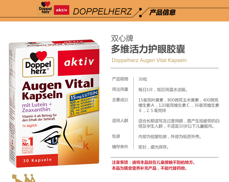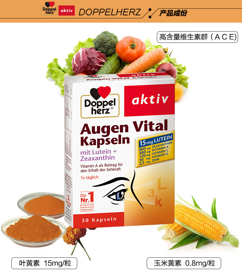 - 商品名称:德国直邮 德国双心牌Doppelherz Augen叶黄素玉米黄素护眼胶囊 防干眼白内障 30粒装