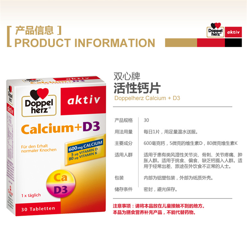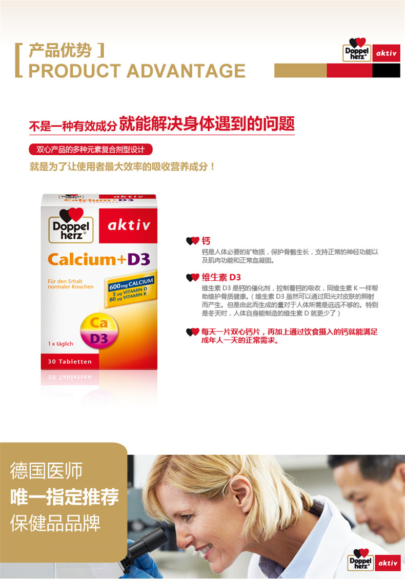 管理员:德国双心牌Doppelherz钙片D3作用是补充维生素D3,不能提升食欲