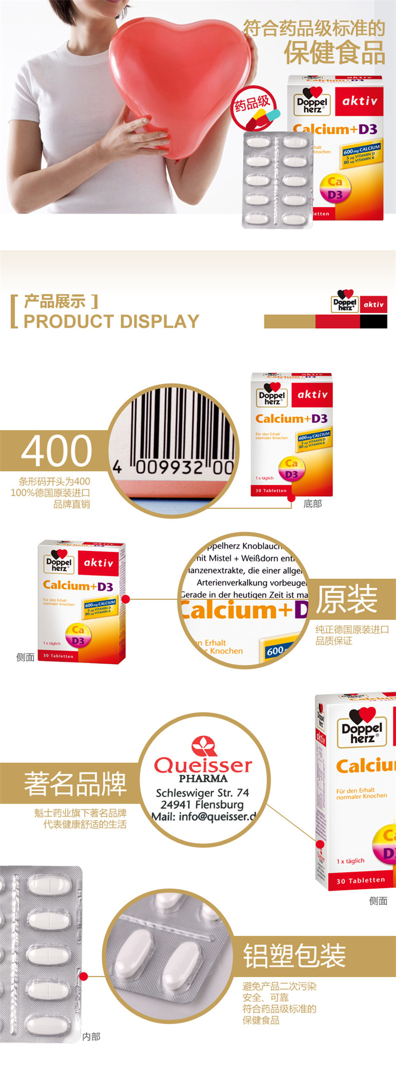 商品名称:德国直邮 德国双心牌Doppelherz钙片+D3 700 30粒 商品编号:2022 品牌:双心Doppelherz 上架时间:2015-02-12 商品毛重:86克 如果您发现商品信息不准确,欢迎纠错;如果您发现有比我们价格更低的,欢迎举报