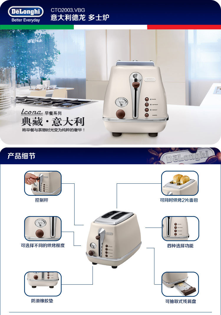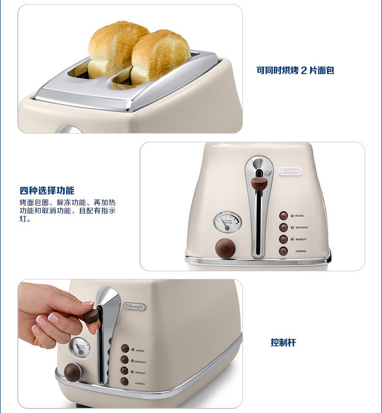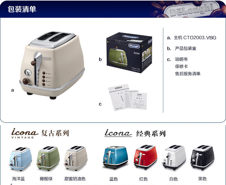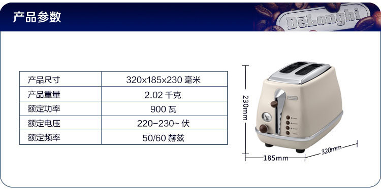 - 商品名称:德国直邮 意大利德龙(Delonghi)CTOV 2103.GR 多士炉 面包机 吐司机 烤面包机 复古绿