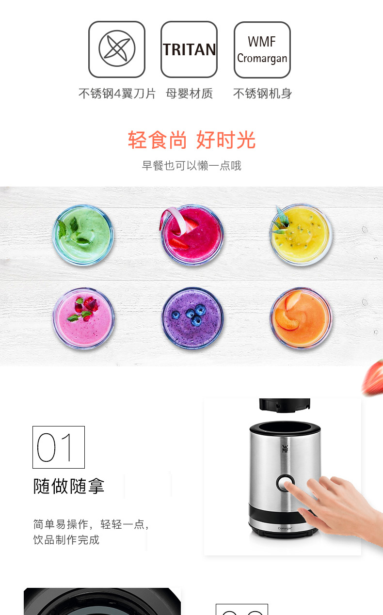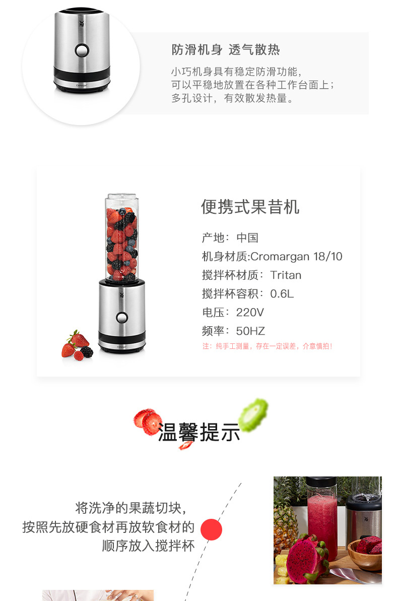 商品名称:德国直邮 福腾宝WMF Smoothie to go 0416500011便携榨汁机果汁机17款新款 1机2杯 商品编号:0416500011 品牌:WMF福腾宝 上架时间:2017-04-11 商品毛重:1.550千克 如果您发现商品信息不准确,欢迎纠错;如果您发现有比我们价格更低的,欢迎举报