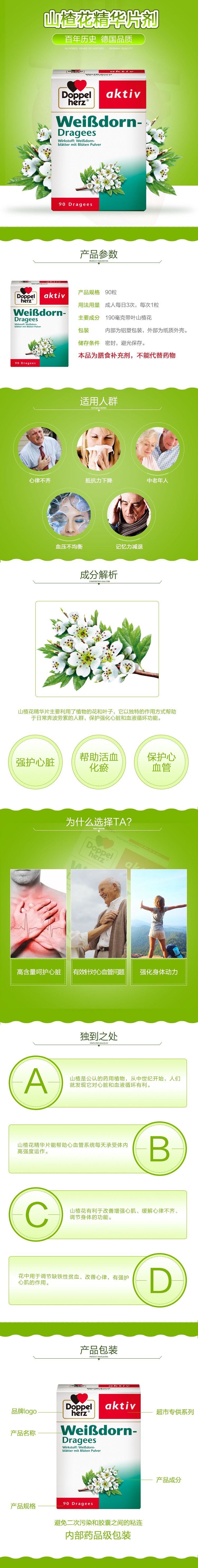 - 商品名称:德国直邮 Doppelherz双心 山楂花精华胶囊 防心痛 Weisdorn Dragees 90粒