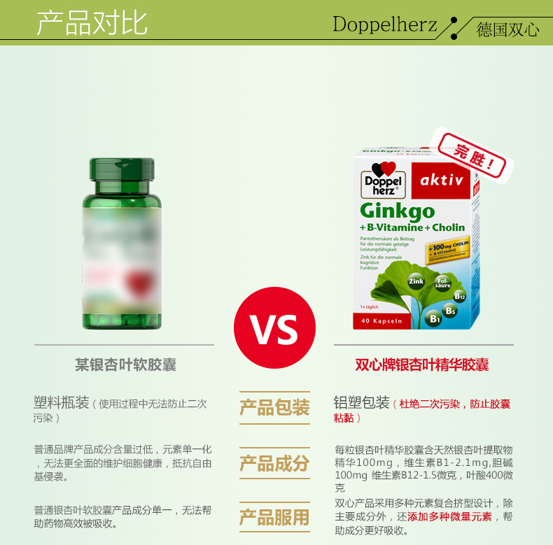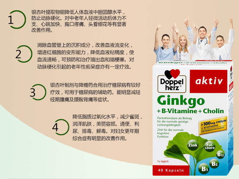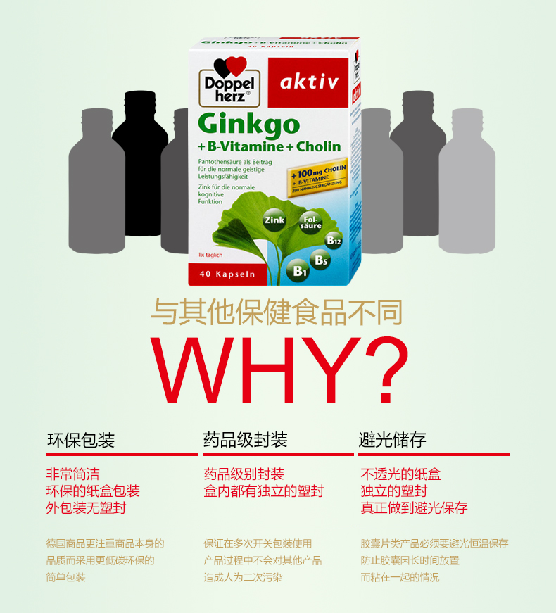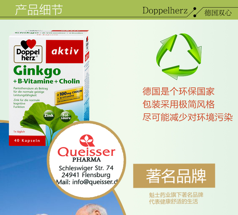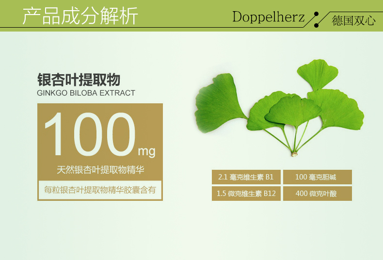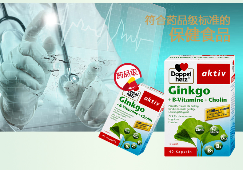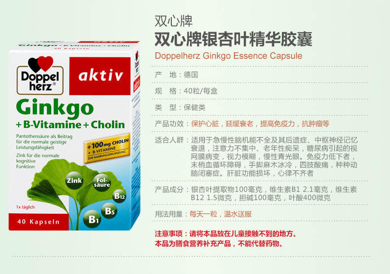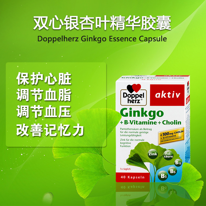 - 商品名称:德国直邮 德国双心牌Doppelherz银杏叶精华胶囊 预防中老年中风脑血栓改善记忆 40粒装
