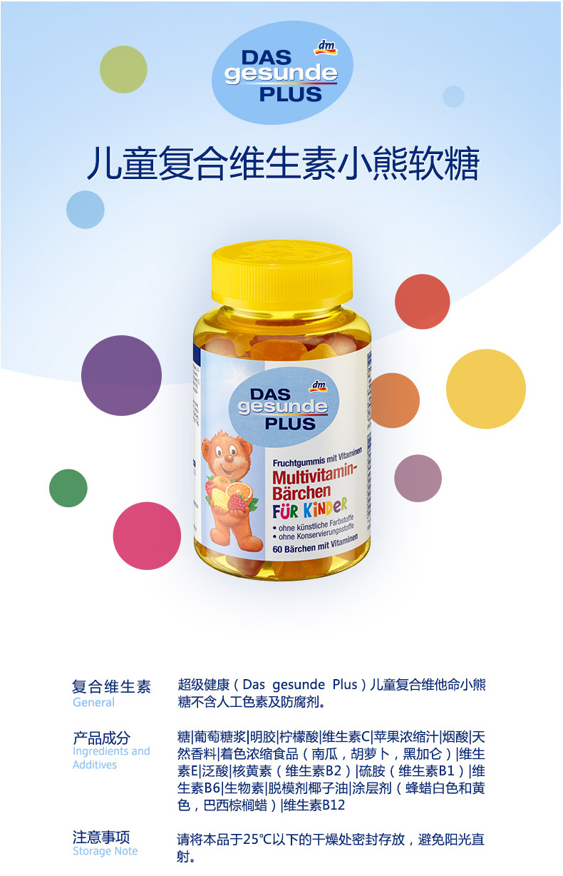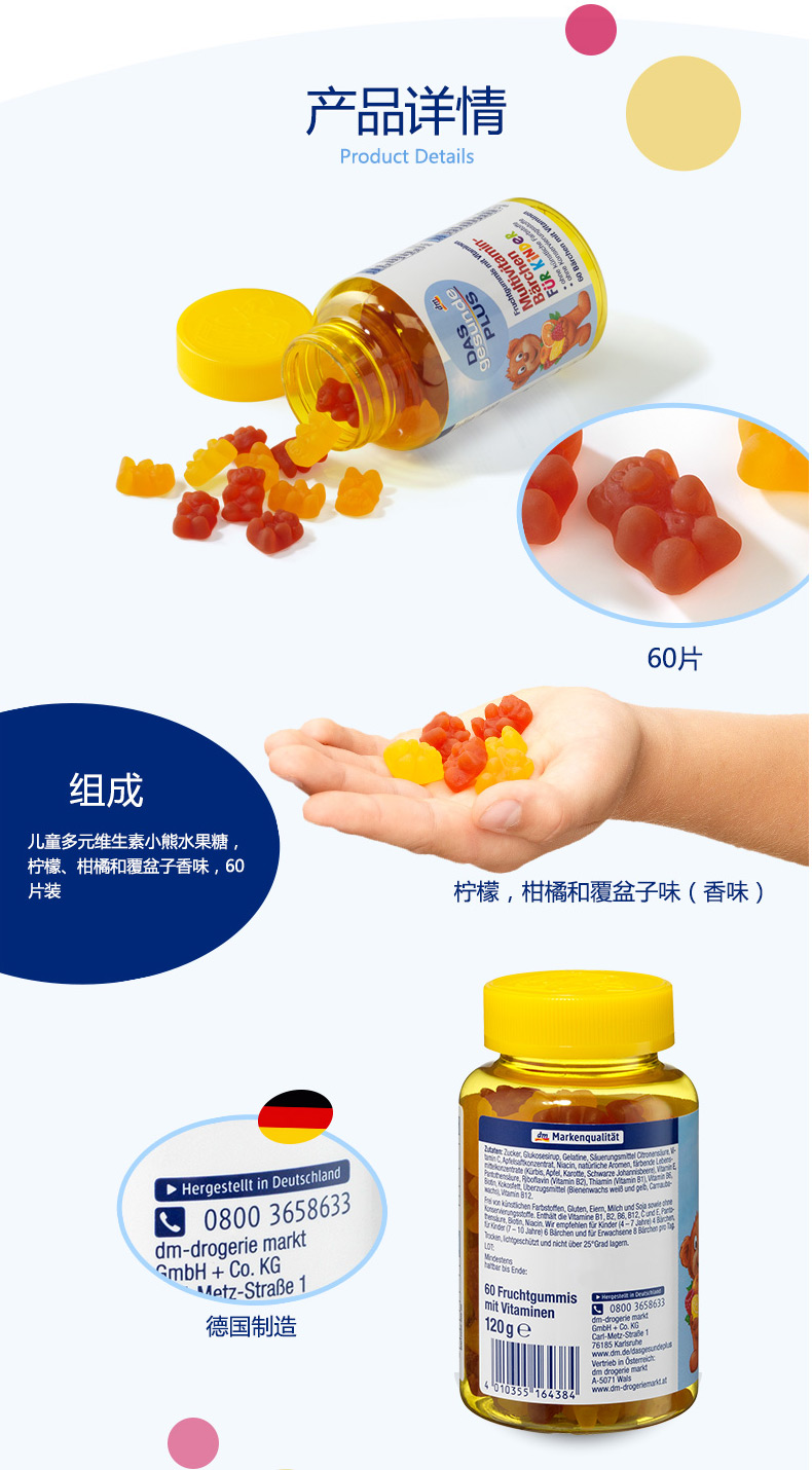 - 商品名称:德国直邮 Das gesunde plus 儿童多维生素水果味QQ小熊软糖 60粒装