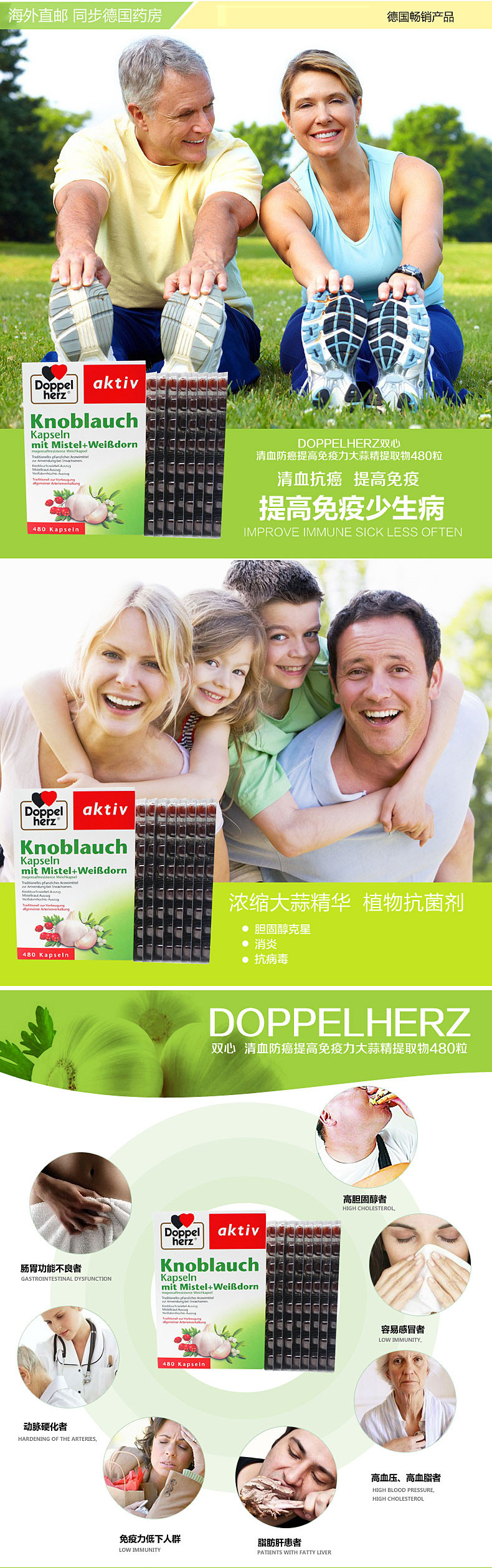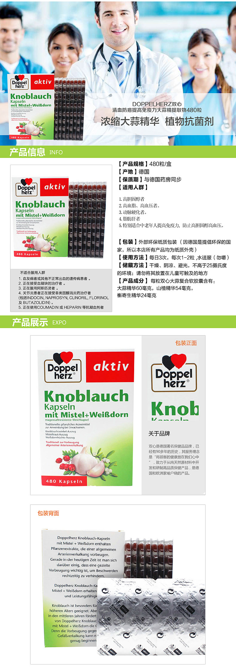 商品名称:德国直邮 德国双心牌Doppelherz大蒜精油大蒜素胶囊 大包装! 商品编号:2014 品牌:双心Doppelherz 上架时间:2015-02-27 商品毛重:296克 如果您发现商品信息不准确,欢迎纠错;如果您发现有比我们价格更低的,欢迎举报