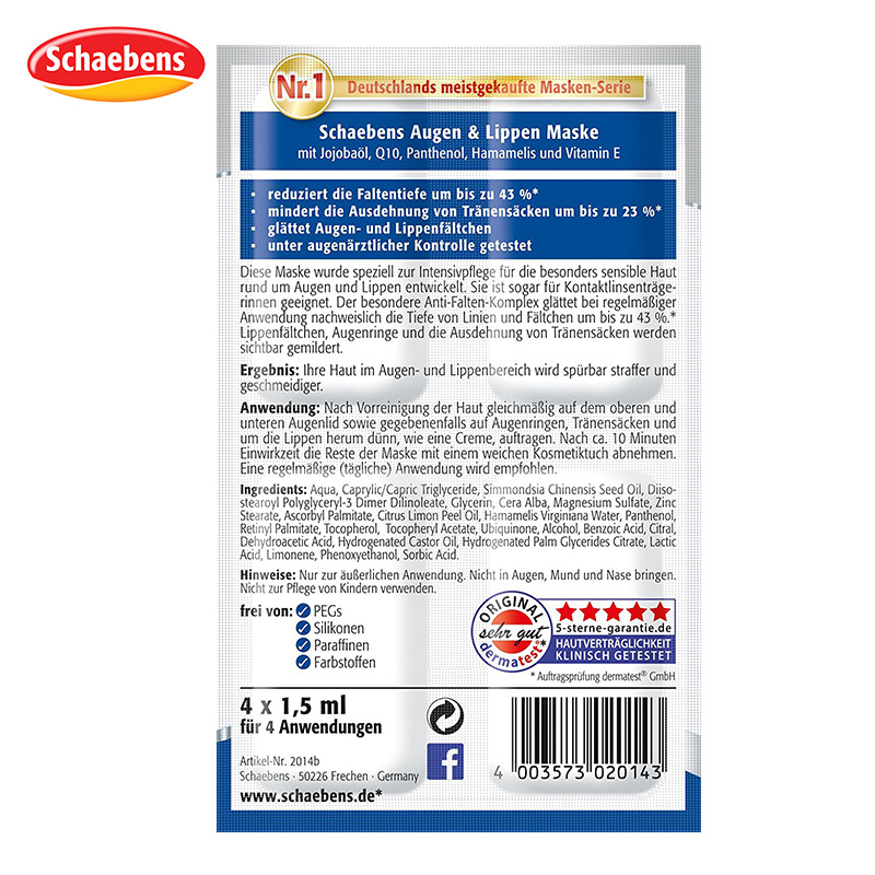 商品名称:德国直邮 德国 Balea 玻尿酸 眼膜 6St 商品编号:YGO4458712 品牌:雪本诗 上架时间:2017-11-06 商品毛重:9克 如果您发现商品信息不准确,欢迎纠错;如果您发现有比我们价格更低的,欢迎举报