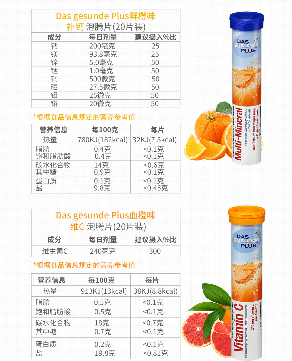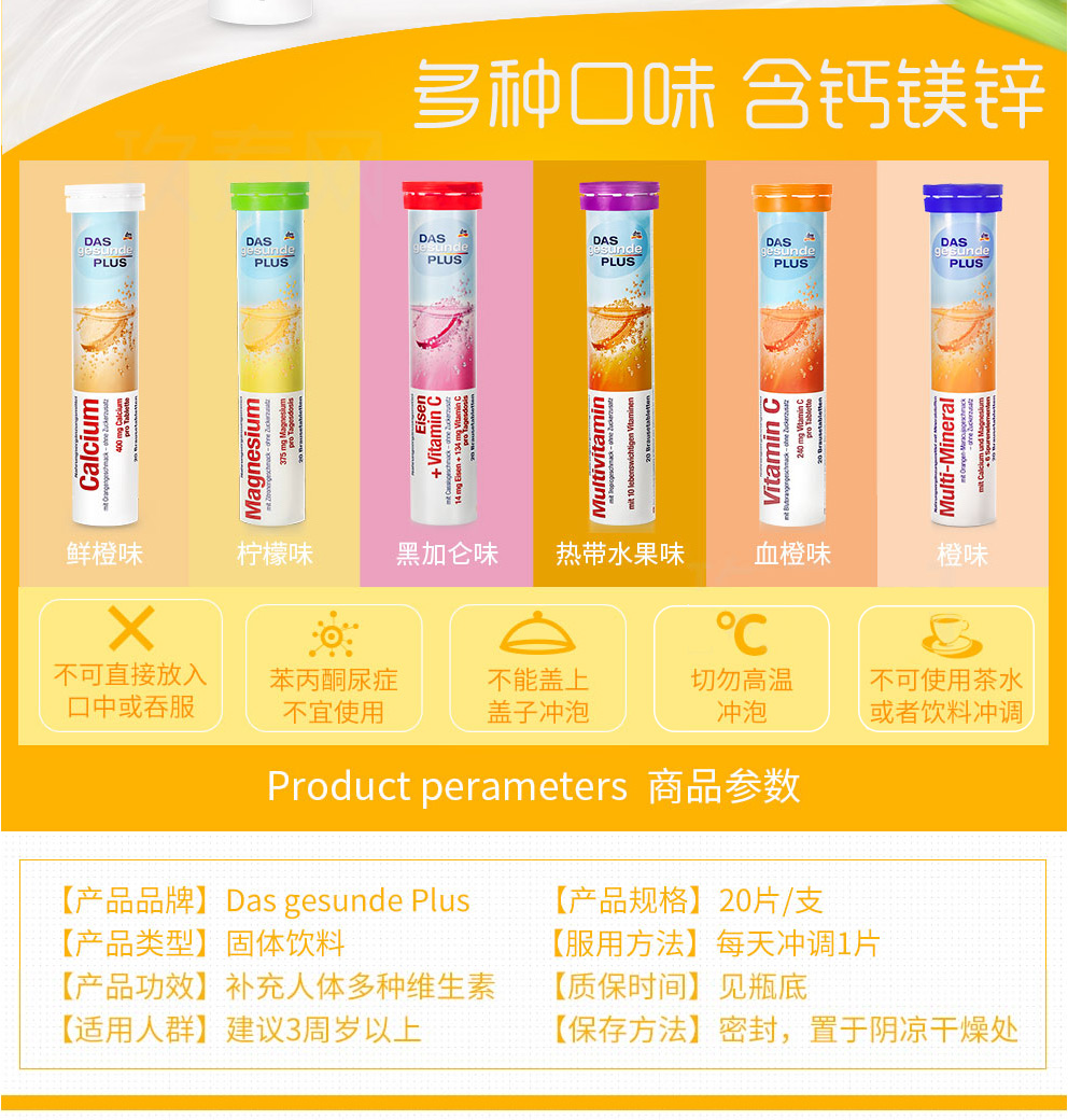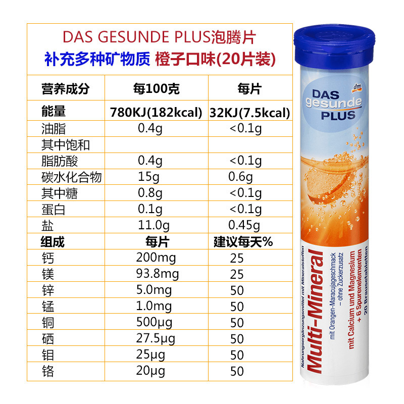 - 商品名称:保税直发 Das gesunde plus无糖泡腾片 补充多种维生素+矿物质 蓝