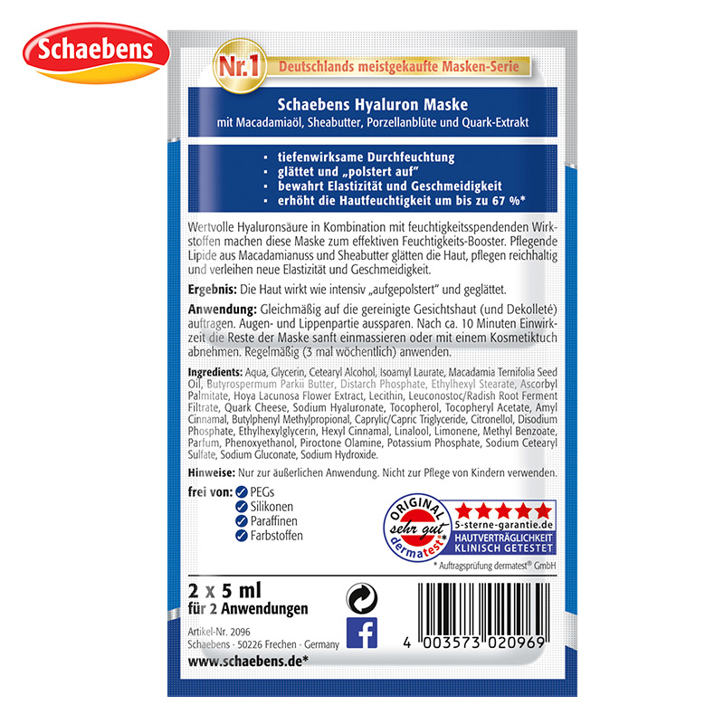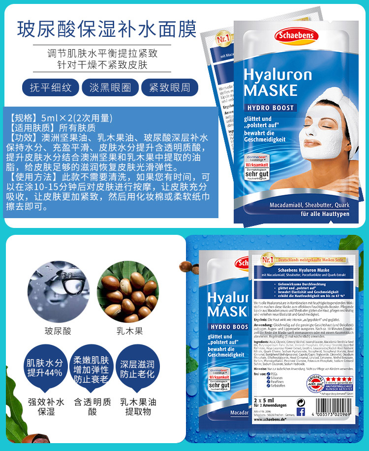 商品名称:德国直邮 德国Schaebens Hyaluron Maske雪本诗玻尿酸面膜 10ml 商品编号:4120 品牌:雪本诗 上架时间:2018-04-17 商品毛重:20克 如果您发现商品信息不准确,欢迎纠错;如果您发现有比我们价格更低的,欢迎举报