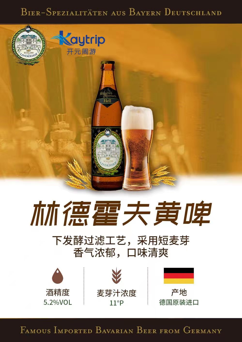 - 商品名称:德国原装进口Linderhof林德霍夫啤酒 黄啤500ml*20瓶 1箱 巴伐利亚王室精酿现货