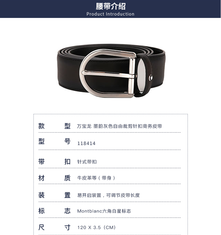 商品名称:德国直邮 MONTBLANC万宝龙 马蹄形自由裁剪针扣商务皮带 118414 商品编号:YGO008212 品牌:MontBlanc 上架时间:2021-03-02 商品毛重:0克 如果您发现商品信息不准确,欢迎纠错;如果您发现有比我们价格更低的,欢迎举报