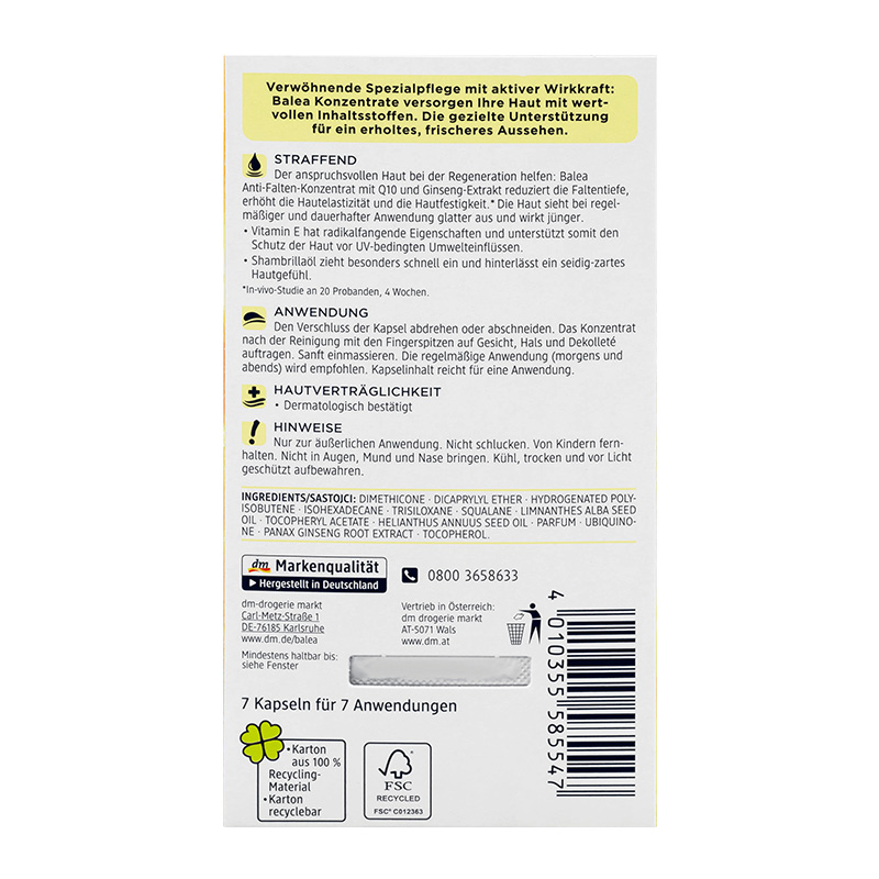 商品名称:德国直邮 德国Balea芭乐雅辅酶Q10紧致提拉抗皱细纹精华胶囊 7粒 商品编号:4075 品牌:Balea芭乐雅 上架时间:2015-08-31 商品毛重:12克 如果您发现商品信息不准确,欢迎纠错;如果您发现有比我们价格更低的,欢迎举报