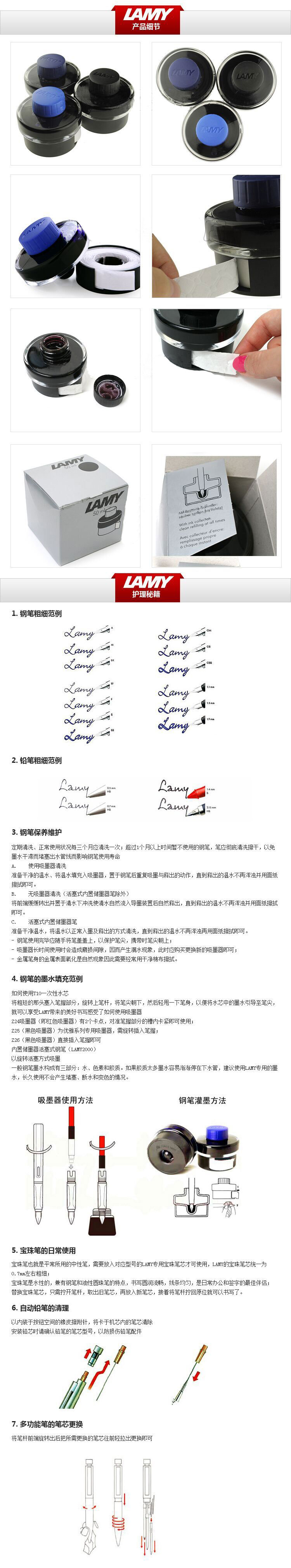 商品名称:德国直邮 德国LAMY T52凌美钢笔T52墨水 碳素黑 Black 50ml 1208931 商品编号:LM104 品牌:Lamy凌美 上架时间:2015-09-10 商品毛重:281克 如果您发现商品信息不准确,欢迎纠错;如果您发现有比我们价格更低的,欢迎举报