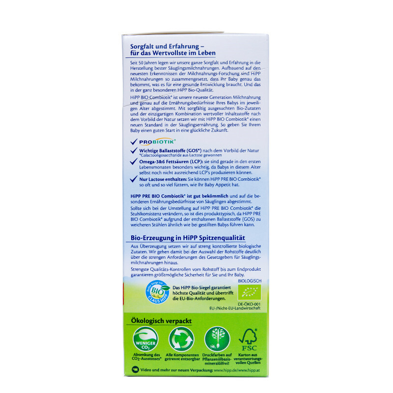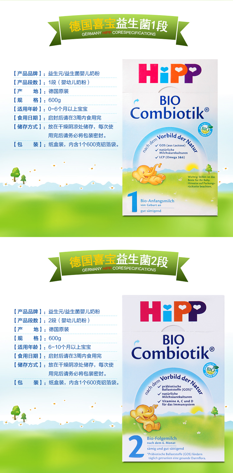 商品名称:保税直发 德国喜宝Hipp Combiotik有机益生菌婴幼儿奶粉 pre段 600g 适合0-6个月宝宝 商品编号:XH0120 品牌:喜宝HIPP 上架时间:2016-07-06 商品毛重:680克 保质期:1年 包装规格:纸盒 奶粉类别:牛奶 原箱规格:4盒 段数:pre 产地:德国 适用年龄:0-6个月 如果您发现商品信息不准确,欢迎纠错;如果您发现有比我们价格更低的,欢迎举报 德国直邮 德国爱他美Aptamil PRE 婴幼儿奶粉 pre段 800g 适合... €17.45 立即购买 >>